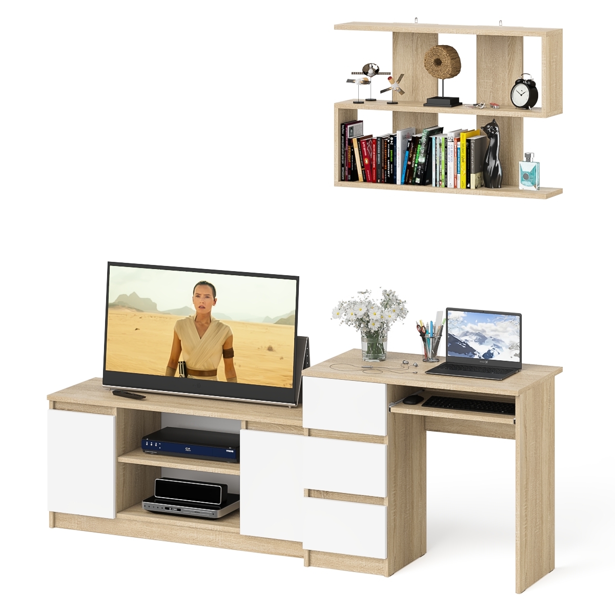 Отзывы о Столплит Мори стол компьютерный МС-6 левый с тумбой МТВ1200.1 и навесной открытой полкой Дуб сонома светлый/Белый