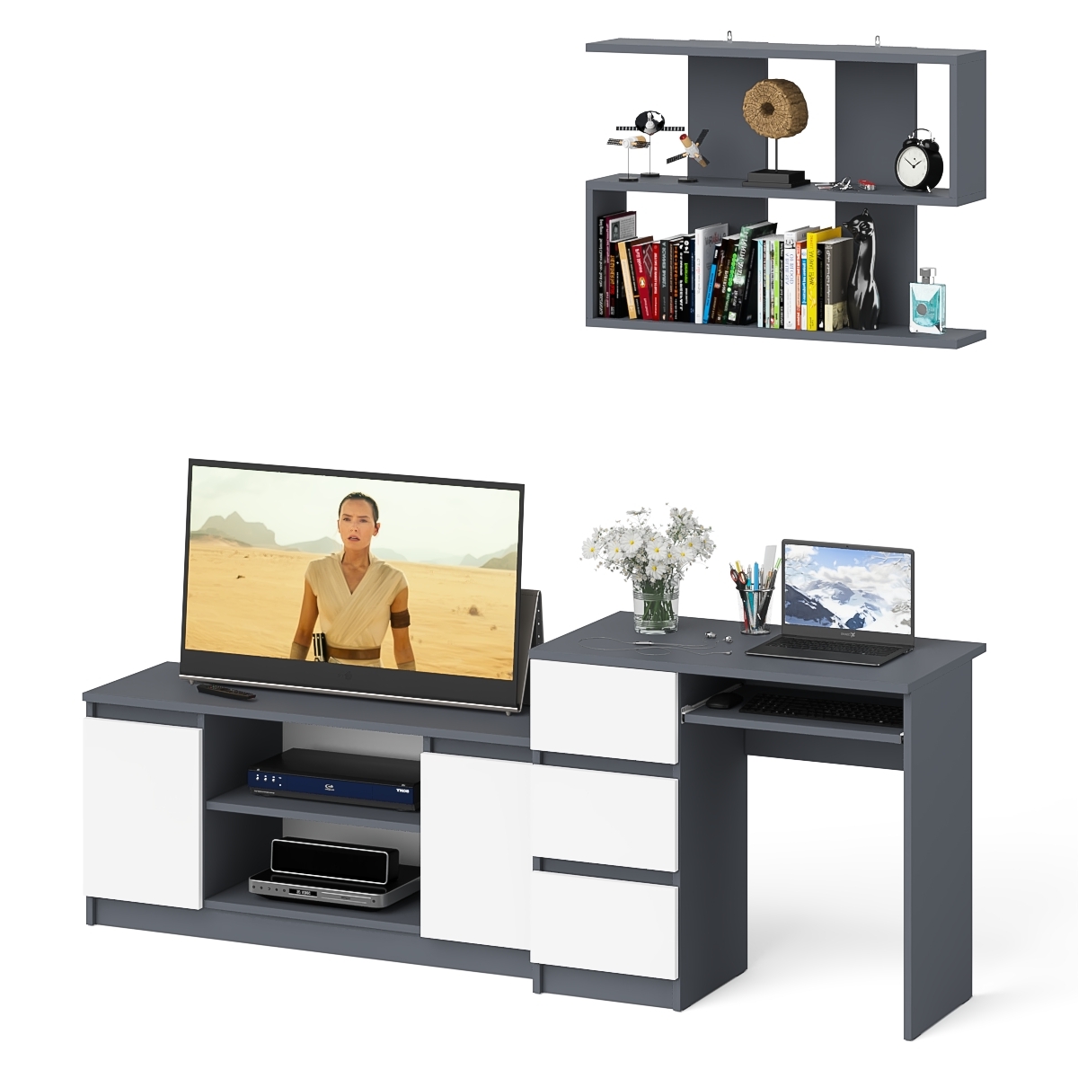 Отзывы о Столплит Мори стол компьютерный МС-6 левый с тумбой МТВ1200.1 и навесной открытой полкой Графит/Белый