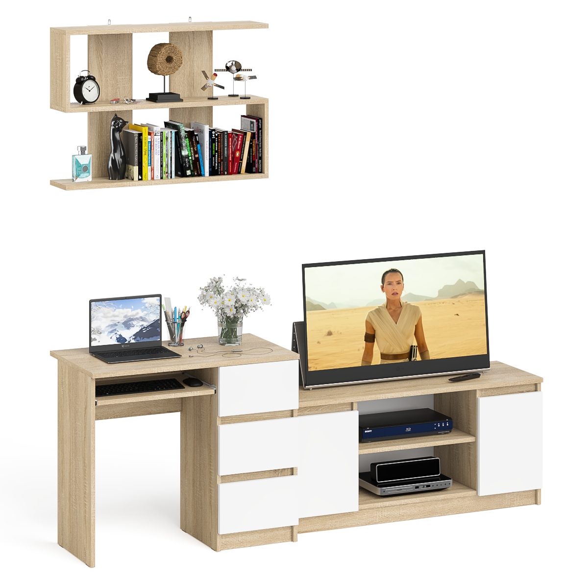 Отзывы о Столплит МС-6 стол ящики справа с тумбой Мори 1200-1 и полкой на 900 Дуб сонома светлый/Белый