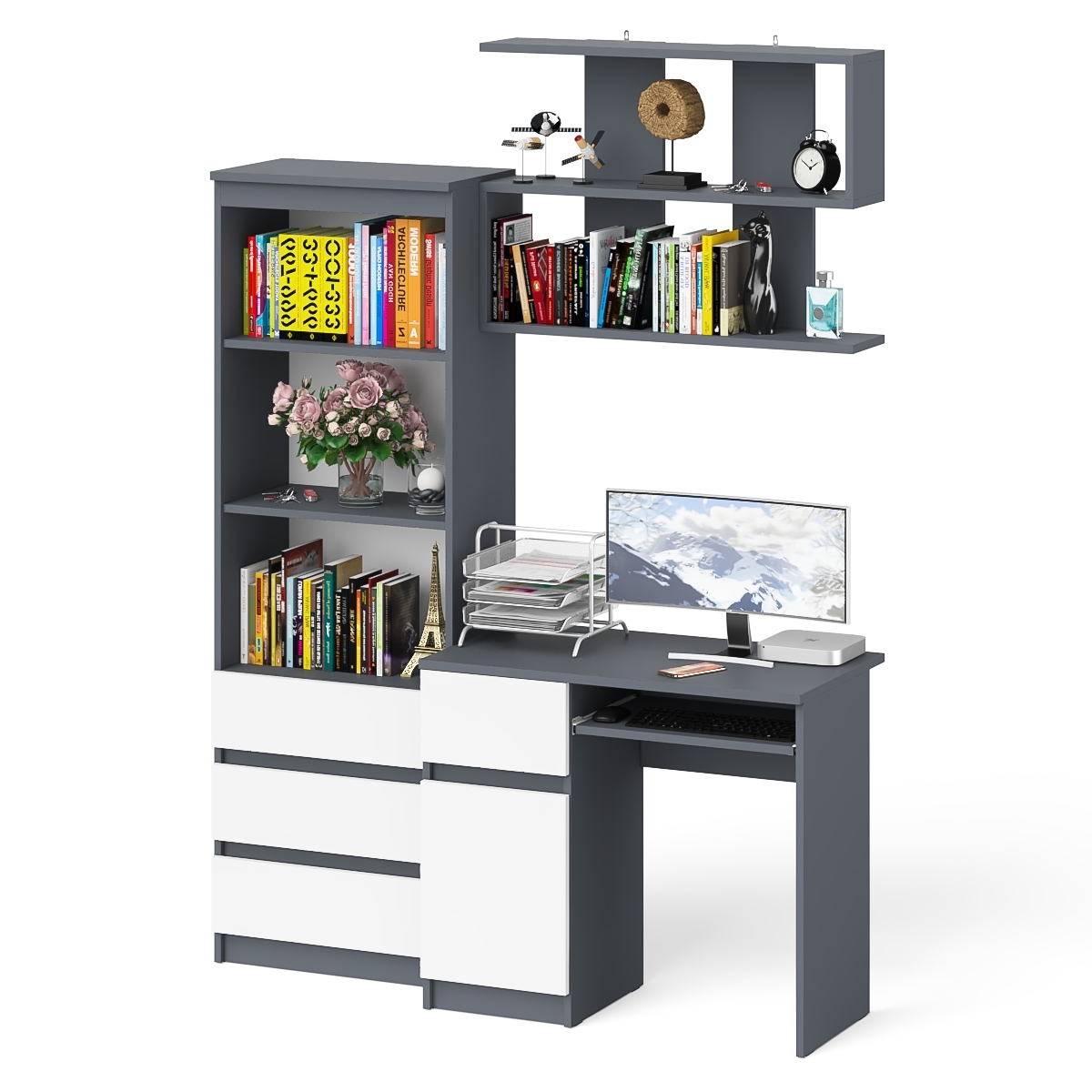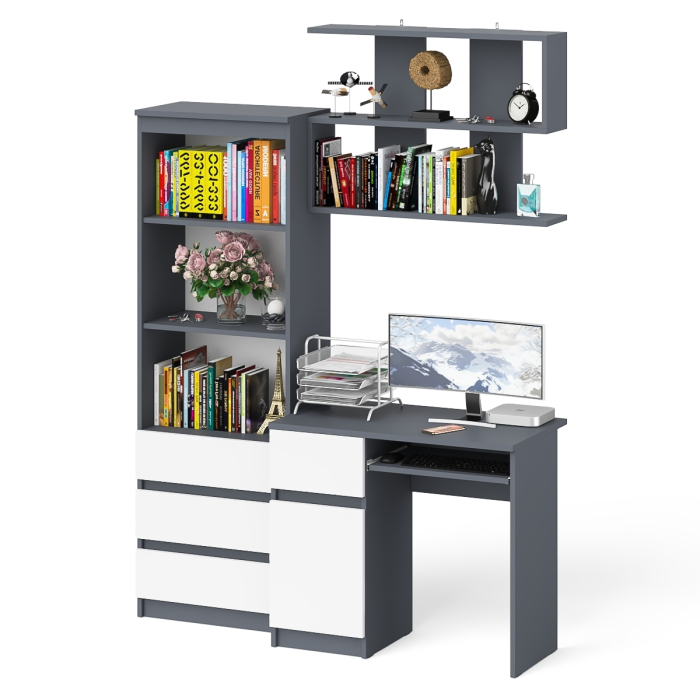 Отзывы о Столплит Рабочее место из стола компьютерного МС-1 левый со стеллажоми и настенной полкой Мори Графит/Белый
