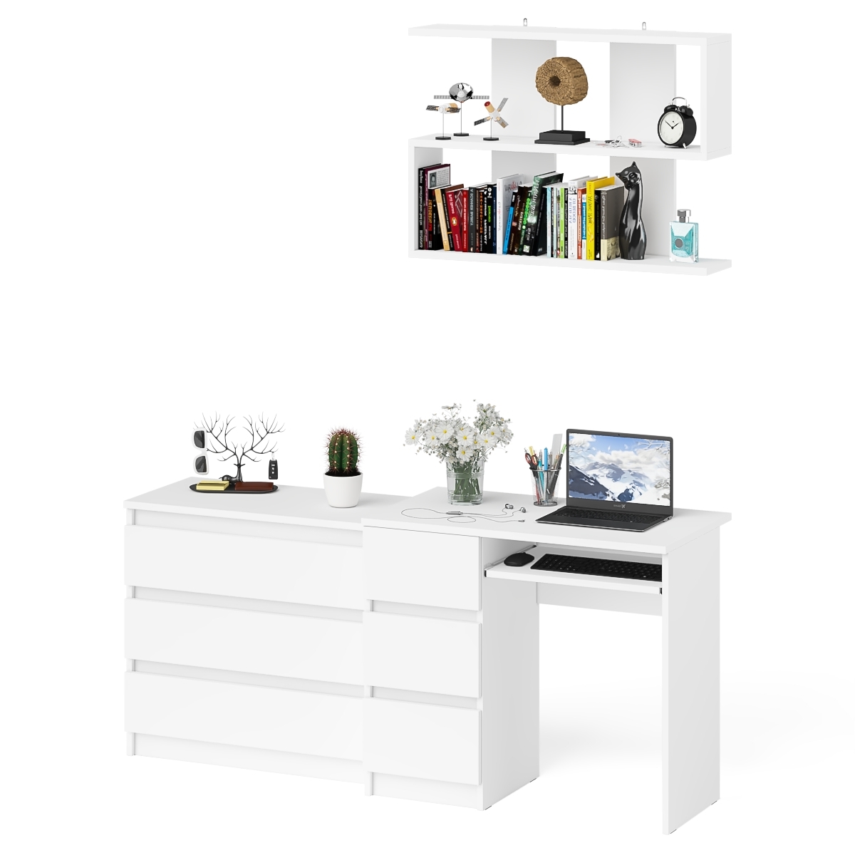 Отзывы о Столплит Компьютерный стол три ящика слева Мори с комодом Мори МК800.1 и полкой на 900 Белый