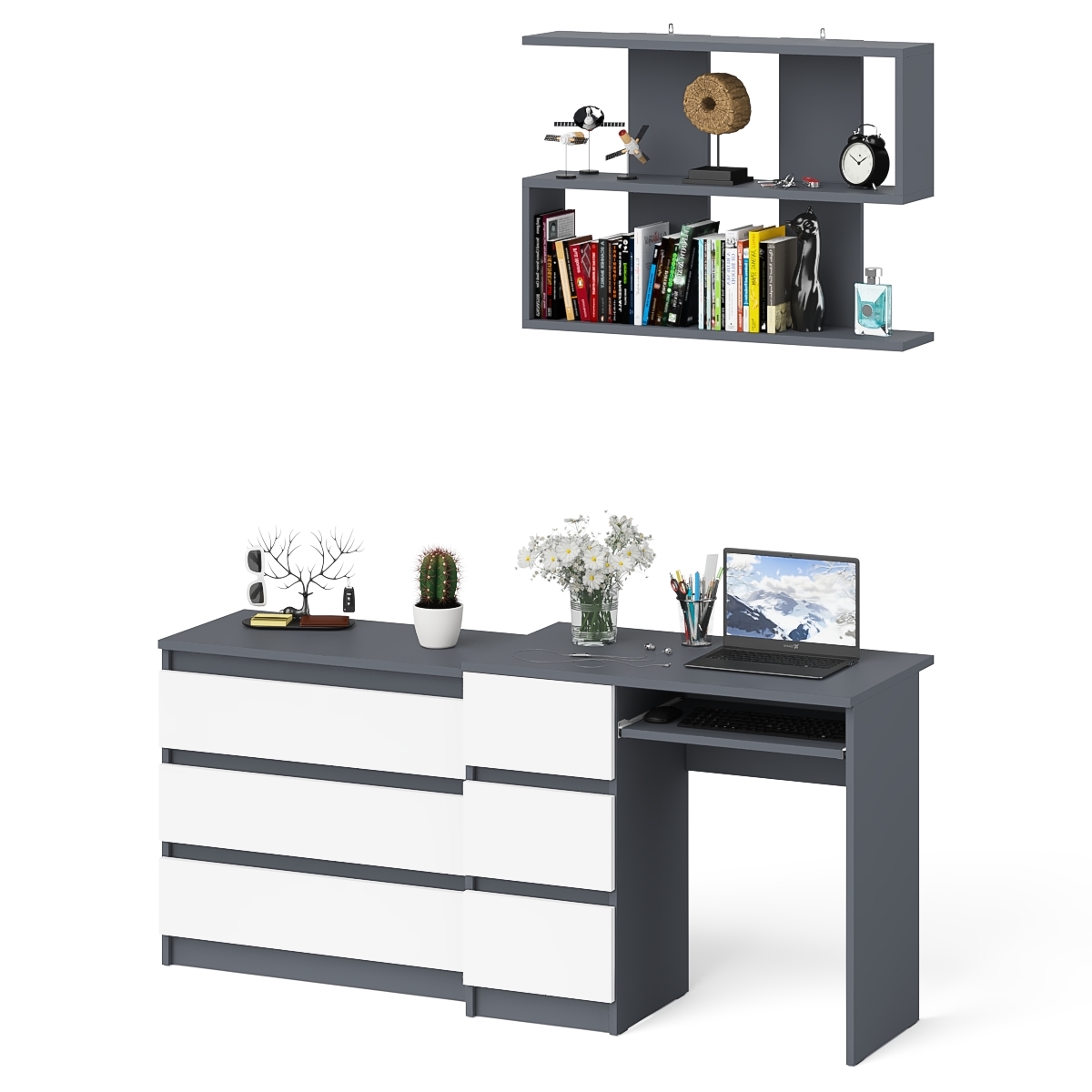 Отзывы о Столплит Компьютерный стол три ящика слева Мори с комодом Мори МК800.1 и полкой на 900 Графит/Белый