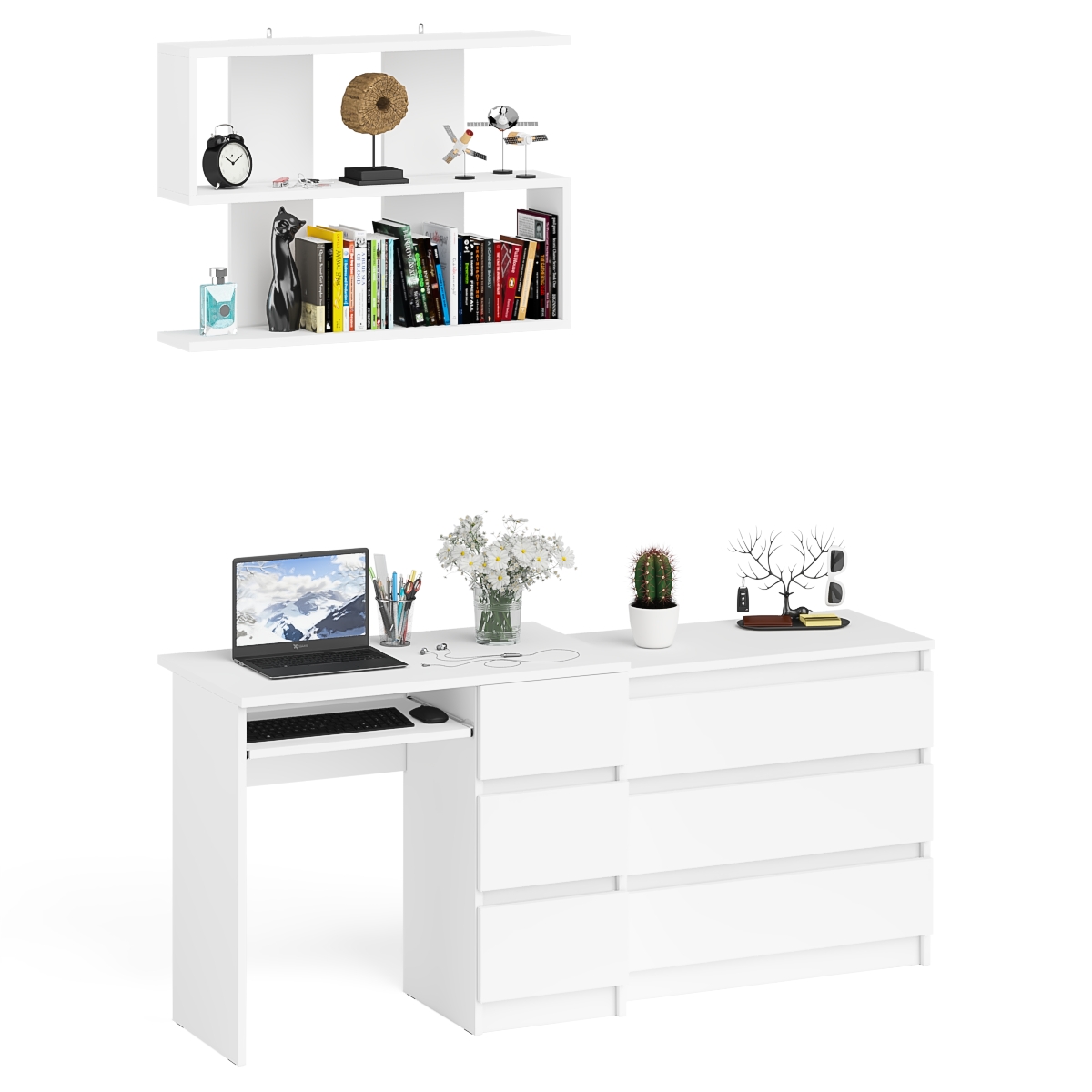 Отзывы о Столплит Стол компьютерный Мори МС-6 правый с навсеной полкой сверху и комодом на три ящика Белый