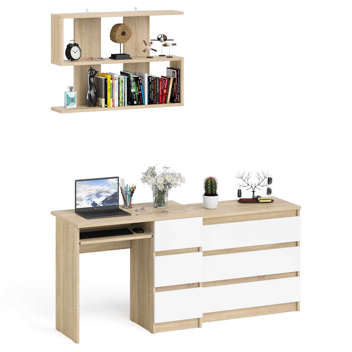 Отзывы о Столплит Стол компьютерный Мори МС-6 правый с навсеной полкой сверху и комодом на три ящика Дуб сонома светлый/Белый
