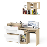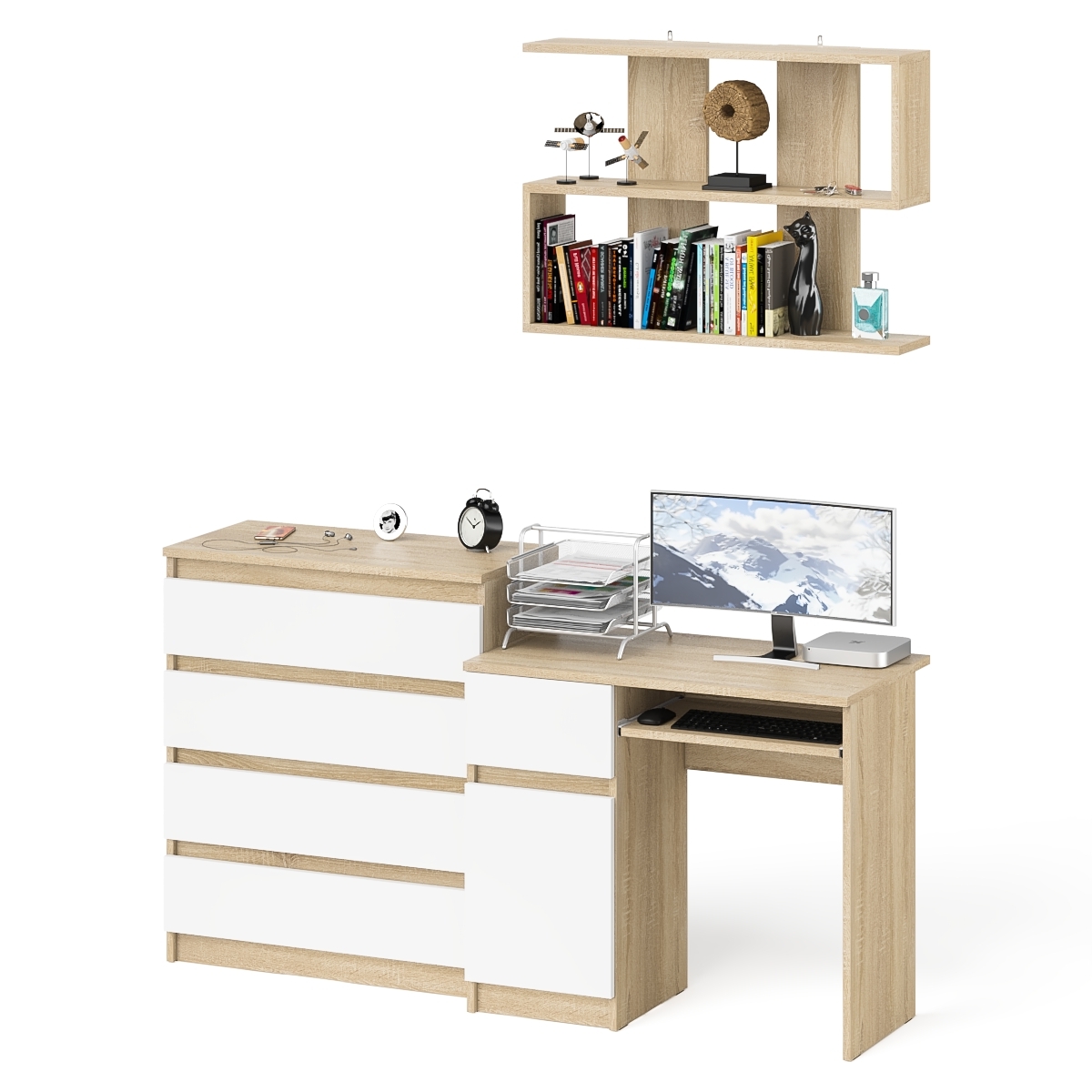 Отзывы о Столплит Комод четыре ящика Мори 800-4 со столом компьютерным с тумбой слева и полкой 900 Дуб сонома светлый/Белый