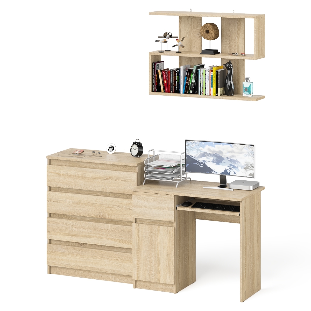 Отзывы о Столплит Комод четыре ящика Мори 800-4 со столом компьютерным с тумбой слева и полкой 900 Дуб Сонома