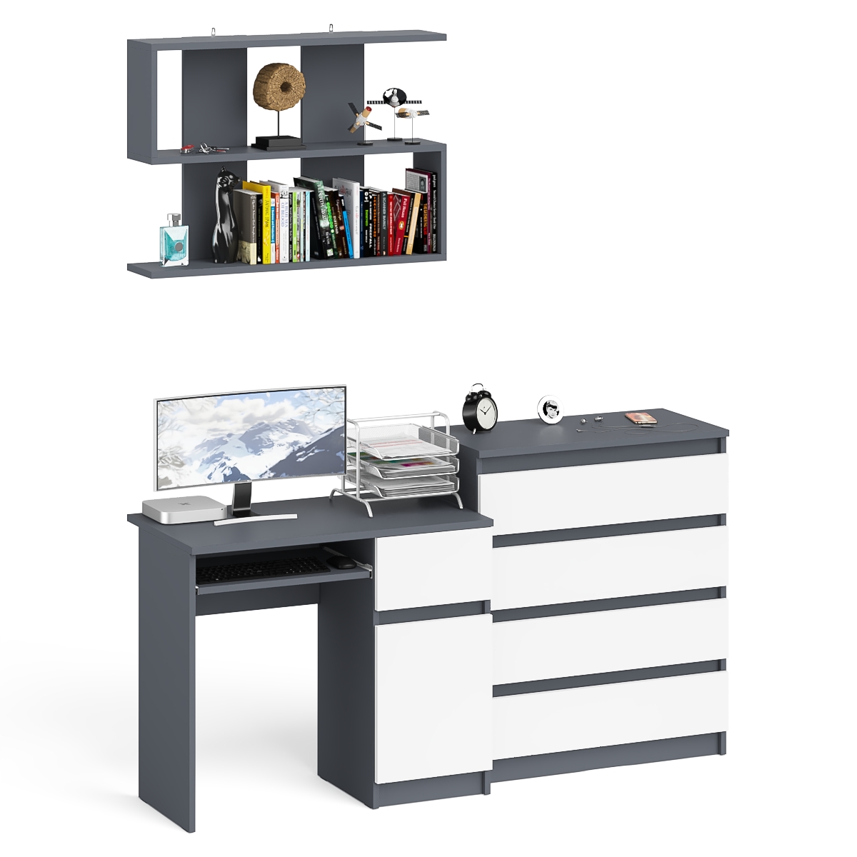 Отзывы о Столплит Комод Мори четыре ящика на 800 с компьютерным однотумбовым столом МС-1 правый и навесной полкой Графит/Белый