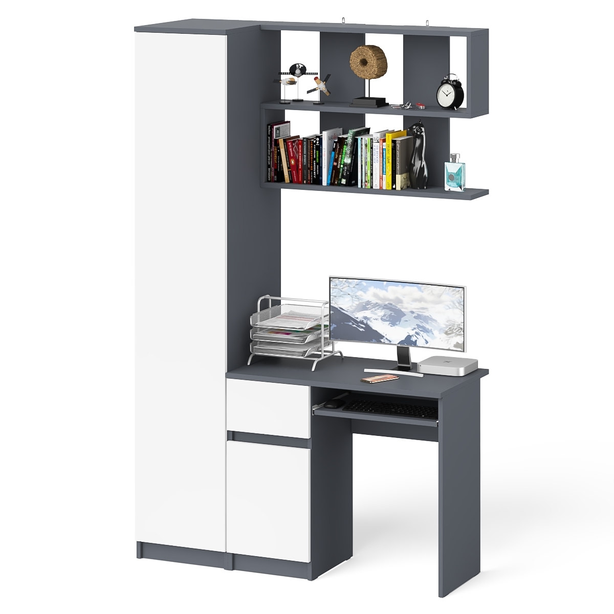 Отзывы о Столплит Пенал с дверкой Мори МШ400-1 с компьютерным столом МС-1 левый и открытой полкой на 900 Графит/Белый