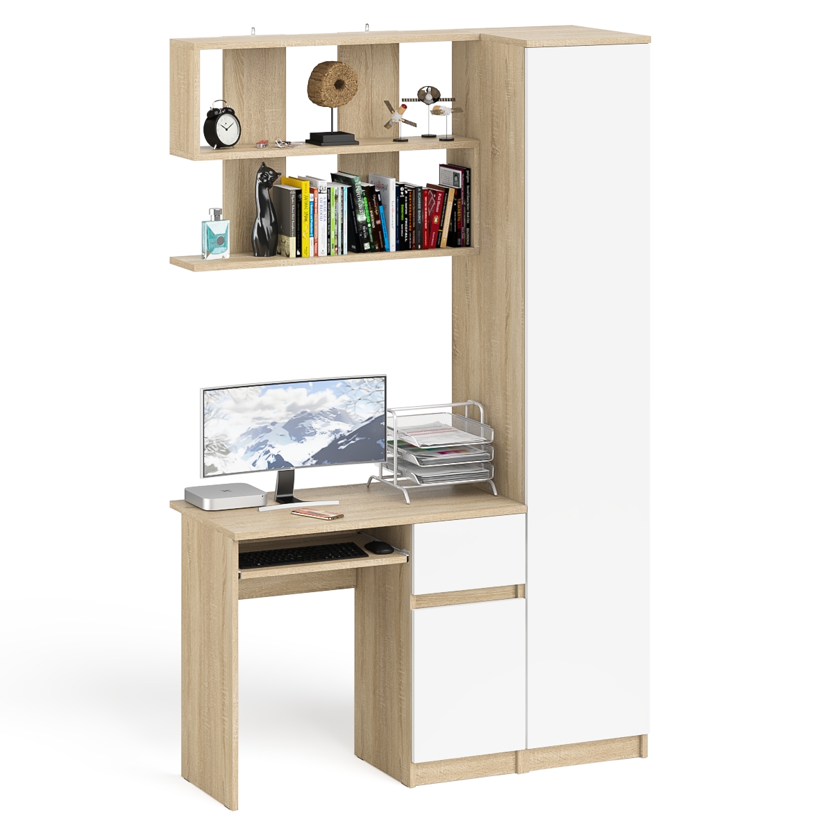 Отзывы о Столплит Пенал Мори однодверный на 400.1 с компьютерным столом Мори МС-1 правый и полкой 900 Дуб сонома светлый/Белый