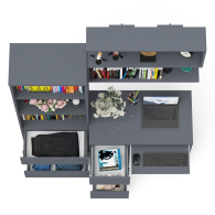 На нижних кромках опор предусмотрены пластиковые подпятники для защиты поверхности пола от механических повреждений. Поставляется в разобранном виде в надёжной упаковке, с комплектом сборочной фурнитуры и инструкцией по сборке.