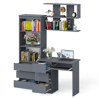 Отзывы о Столплит Стол для работы три ящика слева Мори с навесной полкой на 900 и стеллаж-комод три ящика Графит