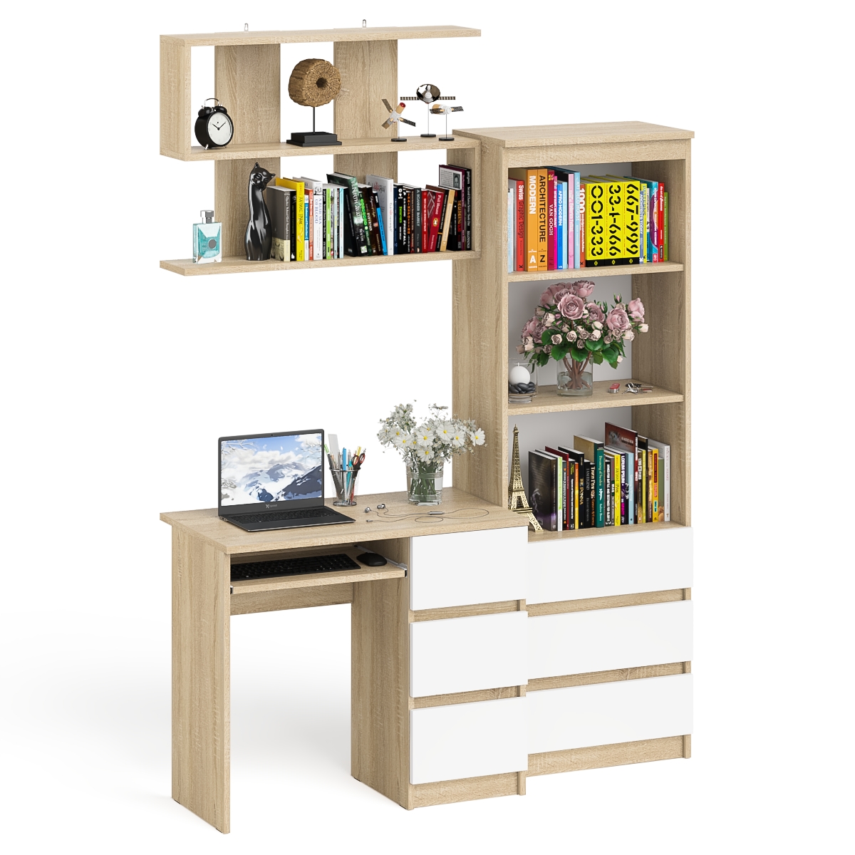 Выполнено в 5 цветах: белый, графит, графит/белый, дуб сонома и дуб сонома/белый.
