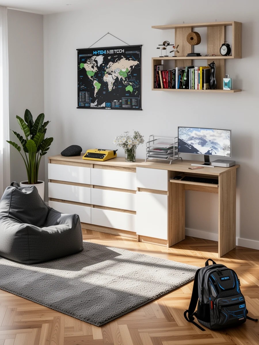 Большой комод на 6-ть ящиков Мори с компьютерным столом МС-1 левый и полка открытая на 900 - минималистичный дизайн и доступная цена позволяет наслаждаться качественной и современной мебелью без значительных финансовых затрат!