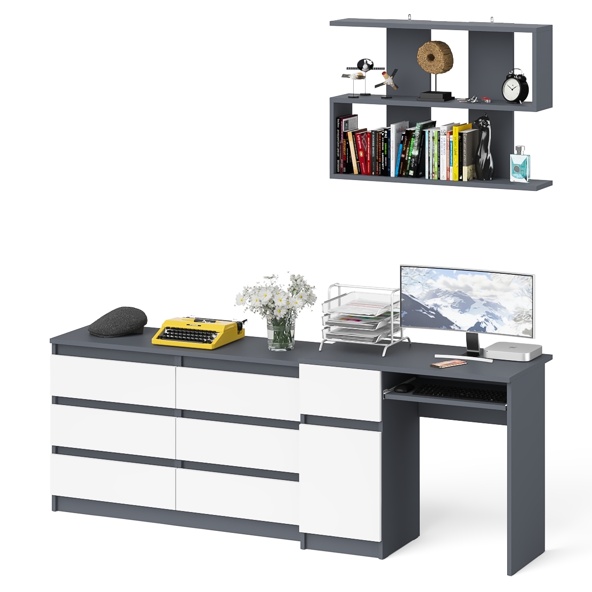Отзывы о Столплит Большой комод на 6-ть ящиков Мори с компьютерным столом МС-1 левый и полка открытая на 900 Графит/Белый