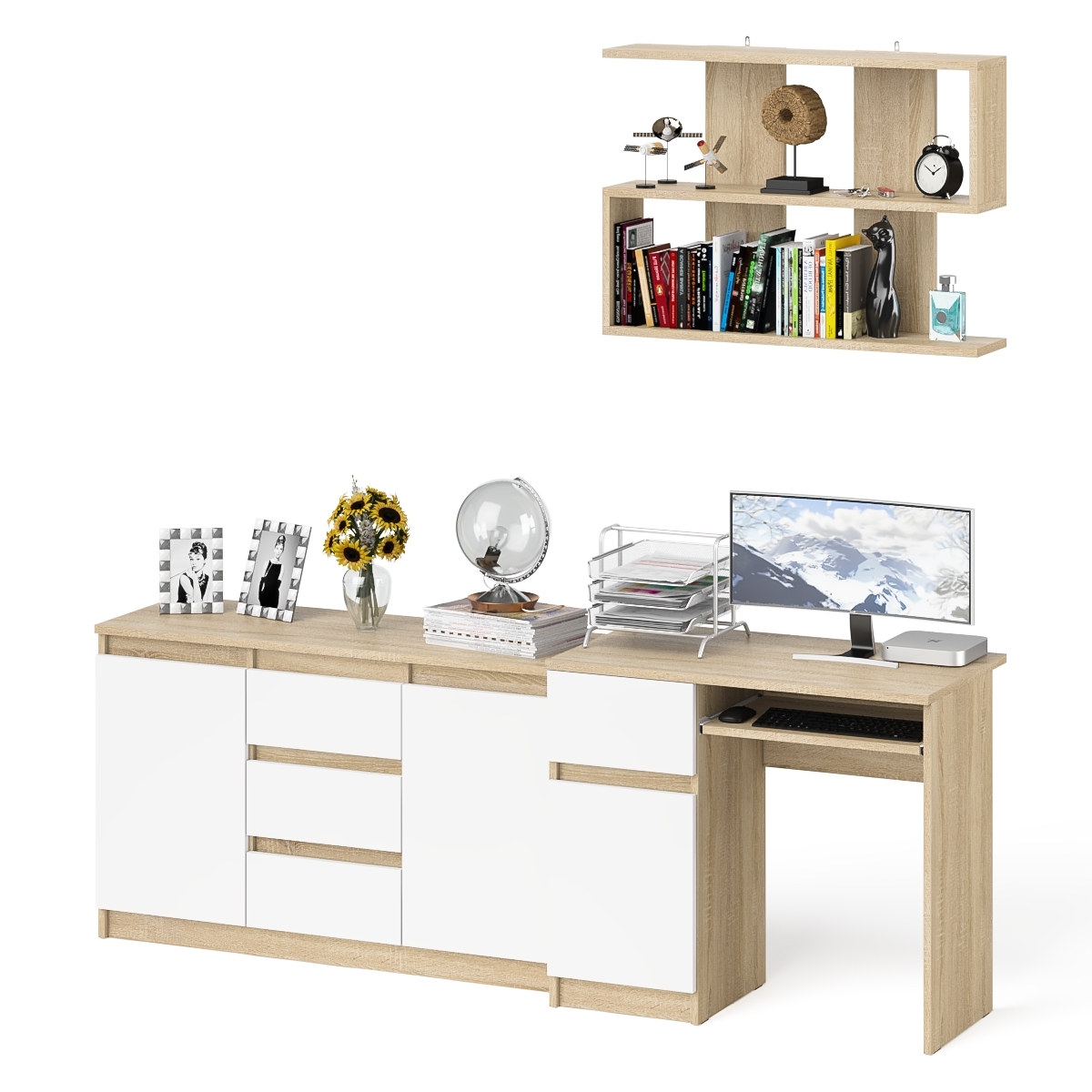 Отзывы о Столплит Стол компьютерный Мори МС-1 левый с верхней полкой и комодом с дверками и ящиками Дуб сонома светлый/Белый