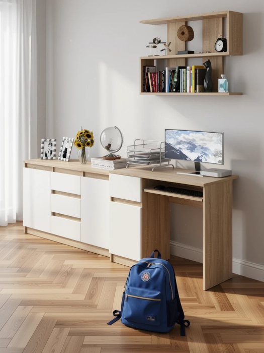 Выполнено в 5 цветах: белый, графит, графит/белый, дуб сонома и дуб сонома/белый.