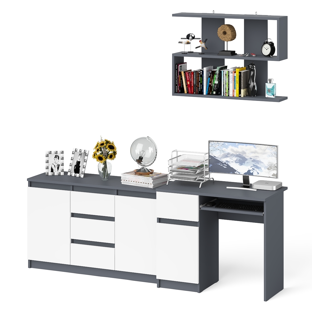 Отзывы о Столплит Стол компьютерный Мори МС-1 левый с верхней полкой и комодом с дверками и ящиками Графит/Белый