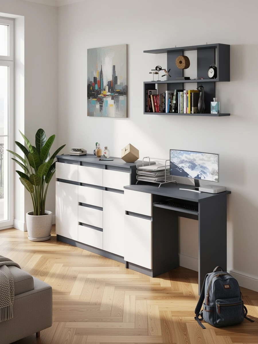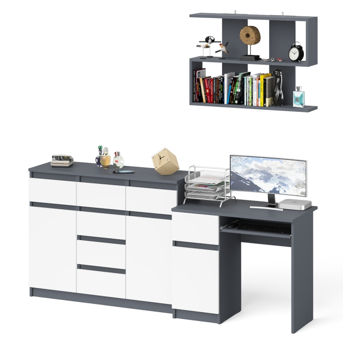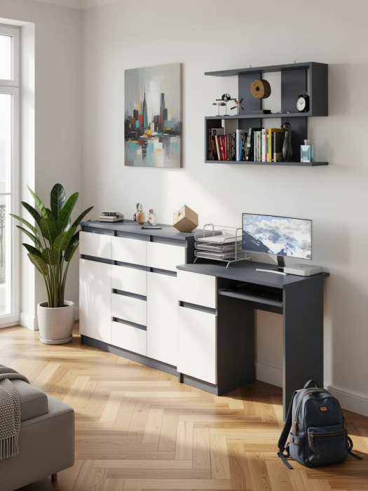 Выполнено в 5 цветах: белый, графит, графит/белый, дуб сонома и дуб сонома/белый.