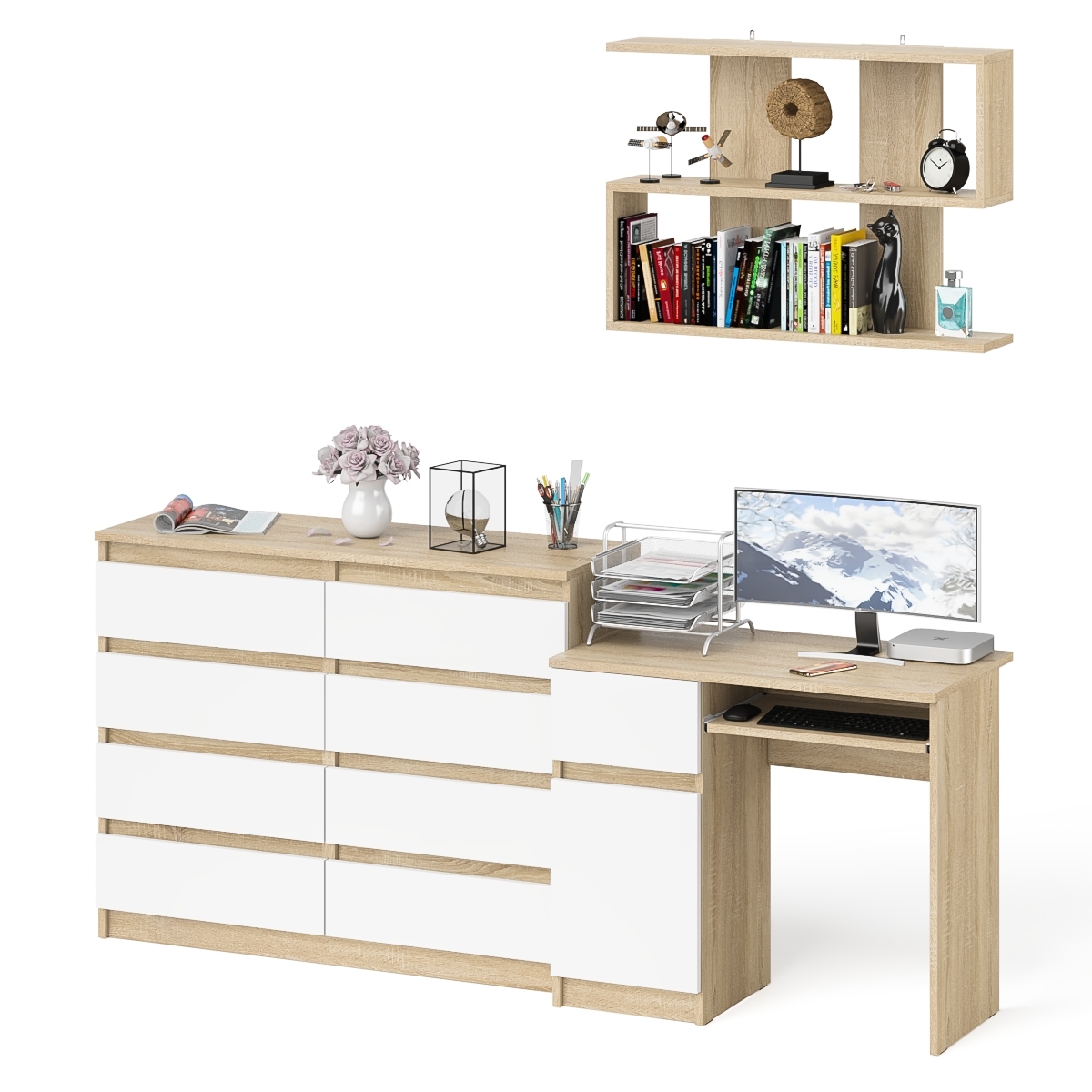 Отзывы о Столплит Комод на восемь ящиков МК1200.8 Мори с компьютерным столом МС-1 левый и верхней полкой 900 Дуб сонома светлый/Белый