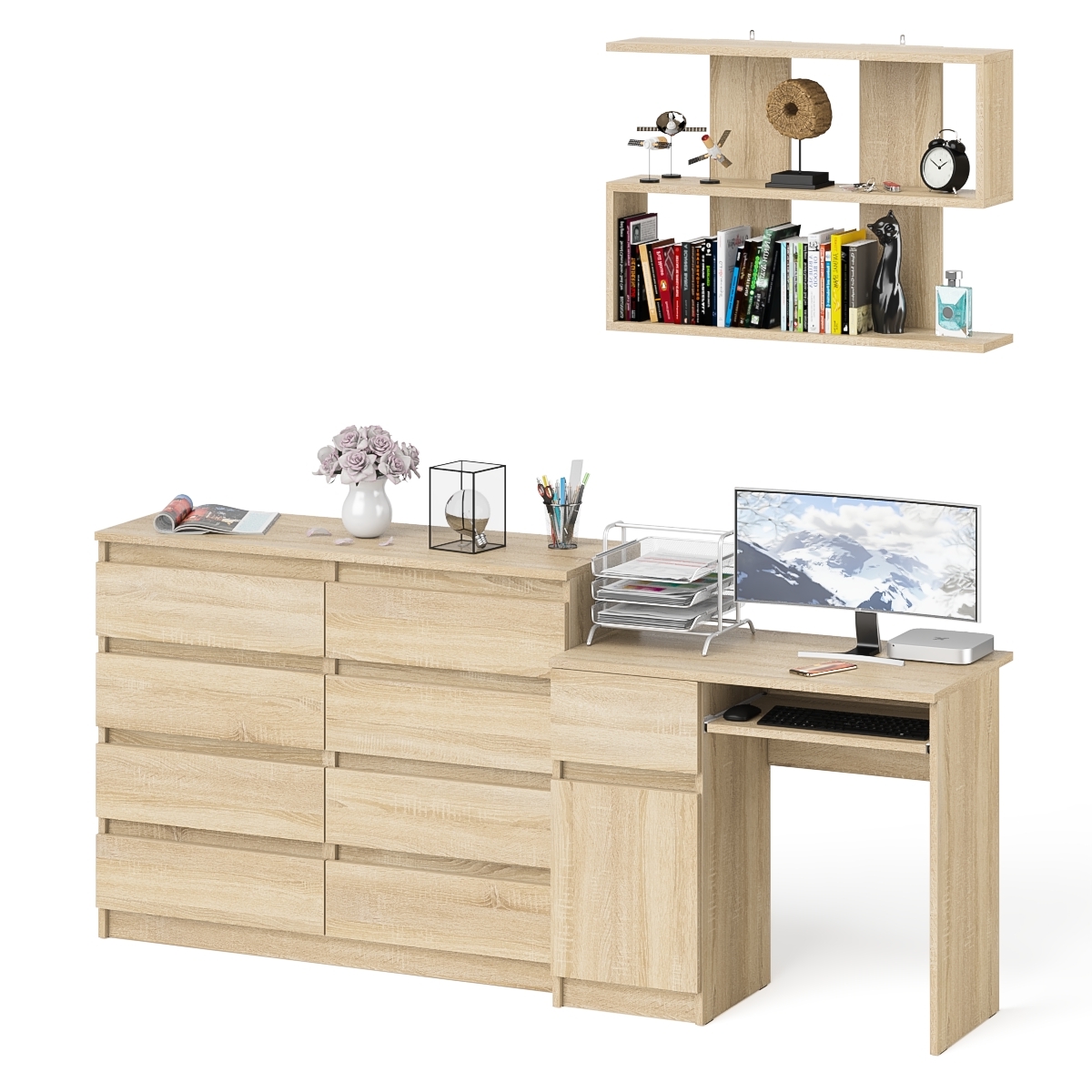 Отзывы о Столплит Комод на восемь ящиков МК1200.8 Мори с компьютерным столом МС-1 левый и верхней полкой 900 Дуб Сонома