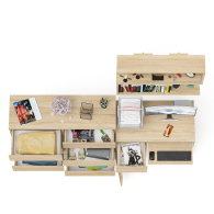 На нижних кромках опор предусмотрены пластиковые подпятники для защиты поверхности пола от механических повреждений. Поставляется в разобранном виде в надёжной упаковке, с комплектом сборочной фурнитуры и инструкцией по сборке.