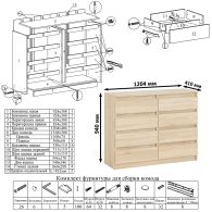 Комод Мори МК1200.8 оборудован восемью выдвижными ящиками, расположенными по четыре в два ряда. Открывание ящиков производится за счет пространства между планками и фасадами. Выдвижные ящики на роликовых направляющих L=350 мм. неполного выдвижения обеспечивают комфортную эксплуатацию.