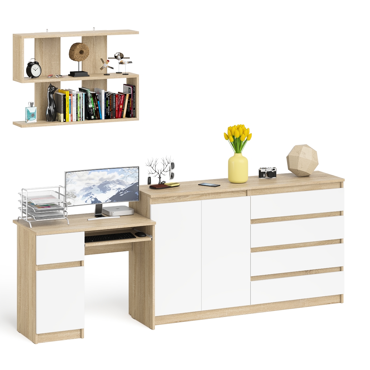 Отзывы о Столплит Стол компьютерный дверка и выдвижной ящик слева с комодом МК1600.1 и полкой Мори 900 Дуб сонома светлый/Белый
