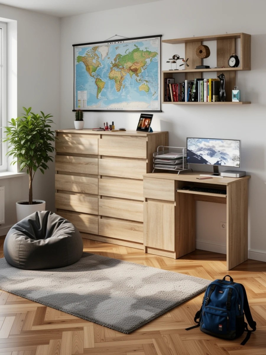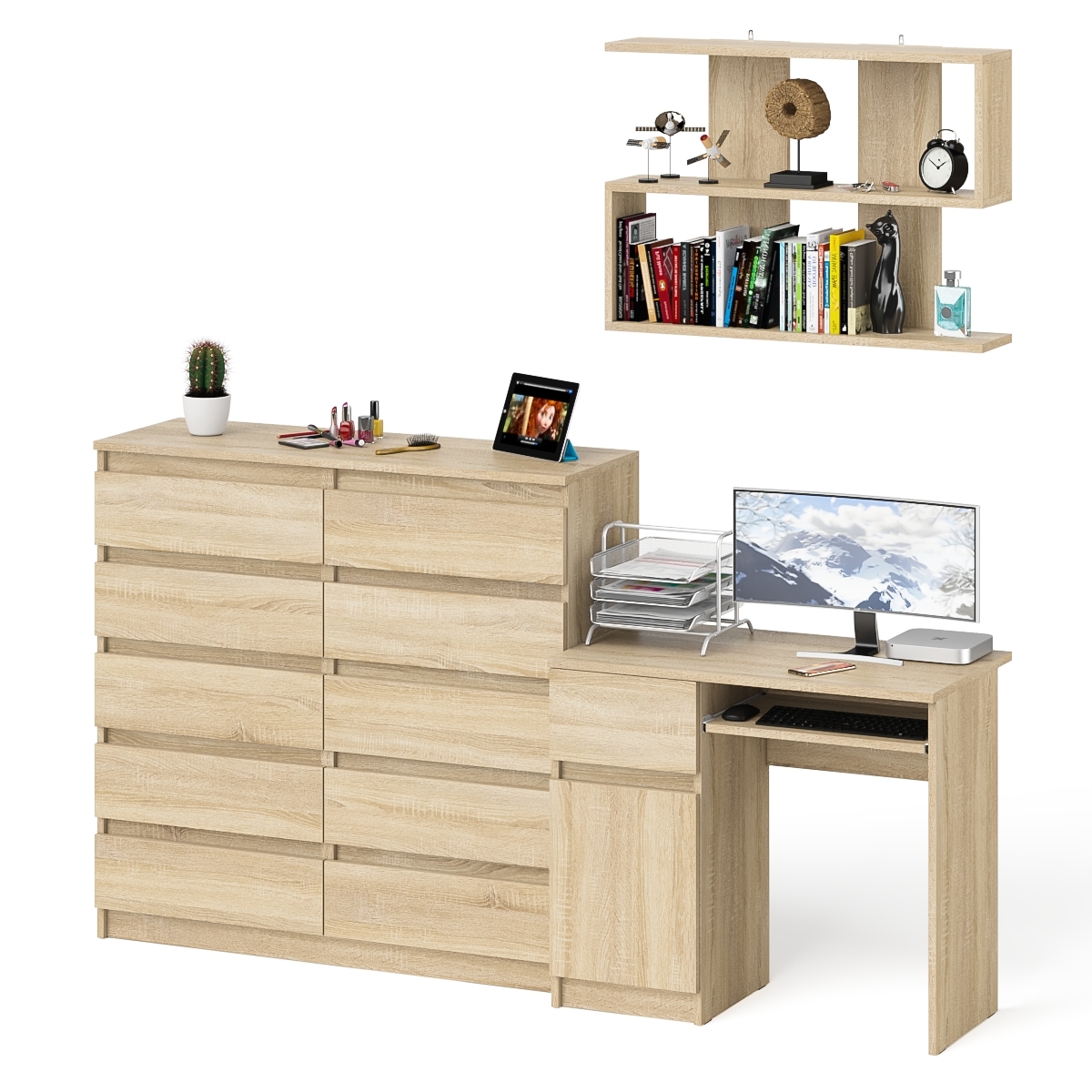 Отзывы о Столплит Комод 10-ть ящиков Мори МК1200.10 с компьютерным столом МС-1 левый и полкой Дуб Сонома
