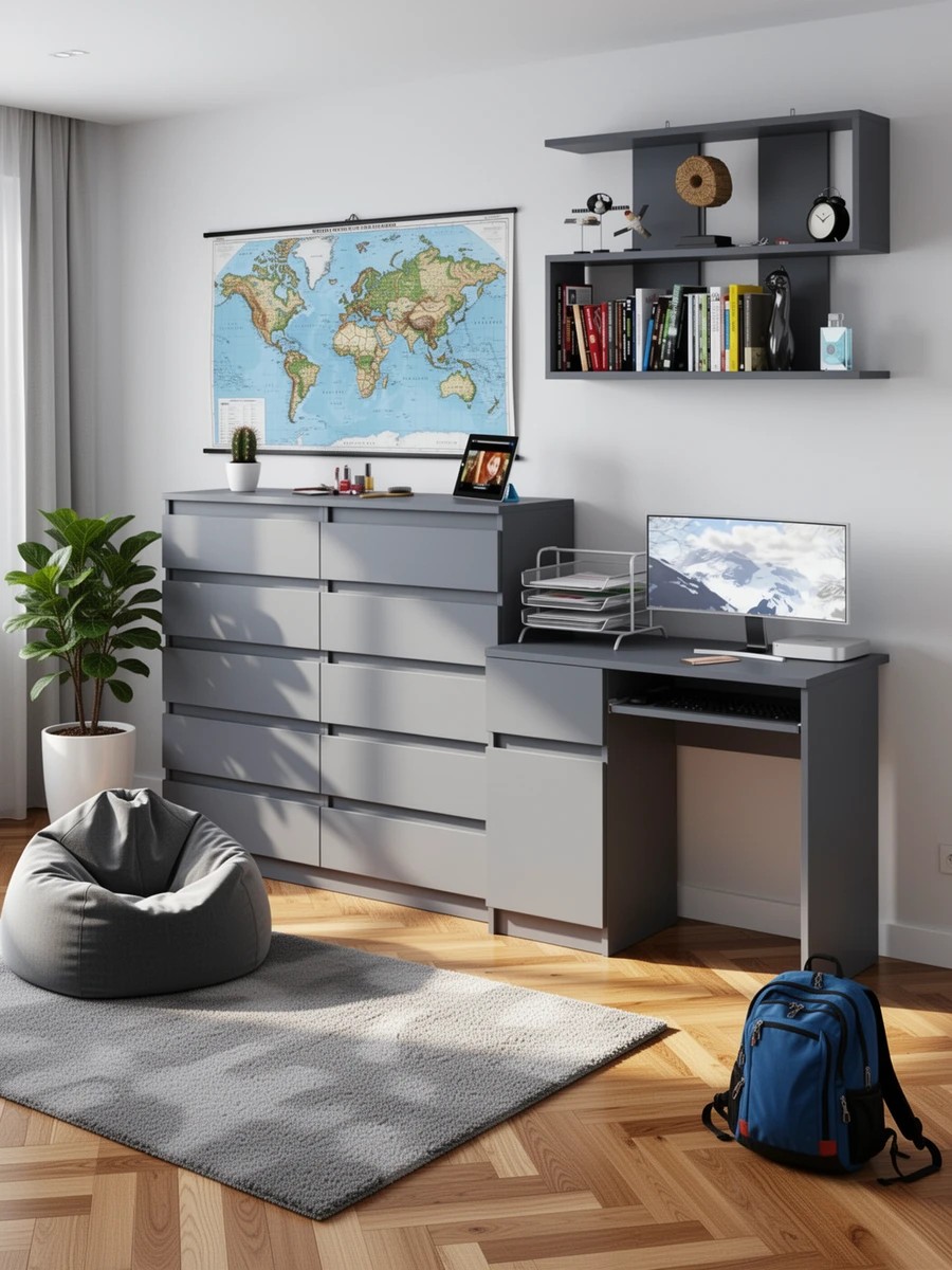 Выполнено в 5 цветах: белый, графит, графит/белый, дуб сонома и дуб сонома/белый.