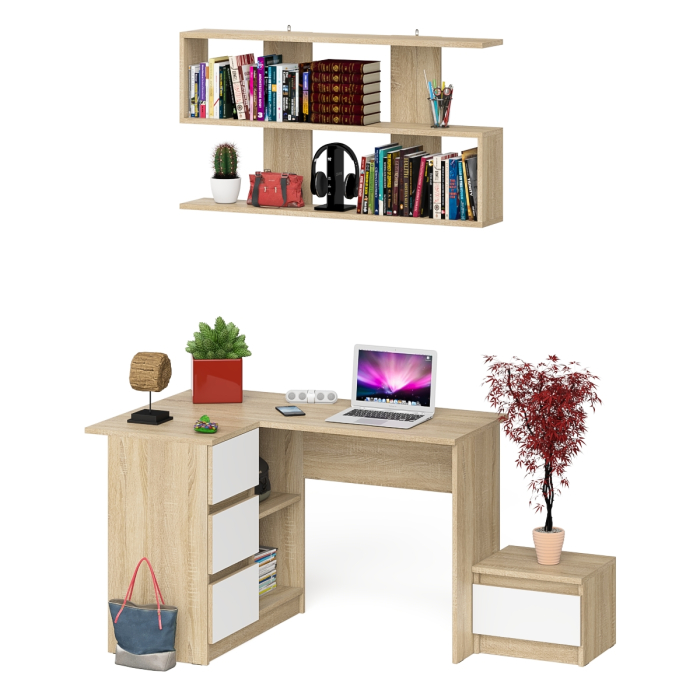 Отзывы о Столплит Угловой стол компьютерный Мори МС-16 левый с тумбочкой с ящиком 400 и полкой на 1200 Дуб сонома светлый/Белый