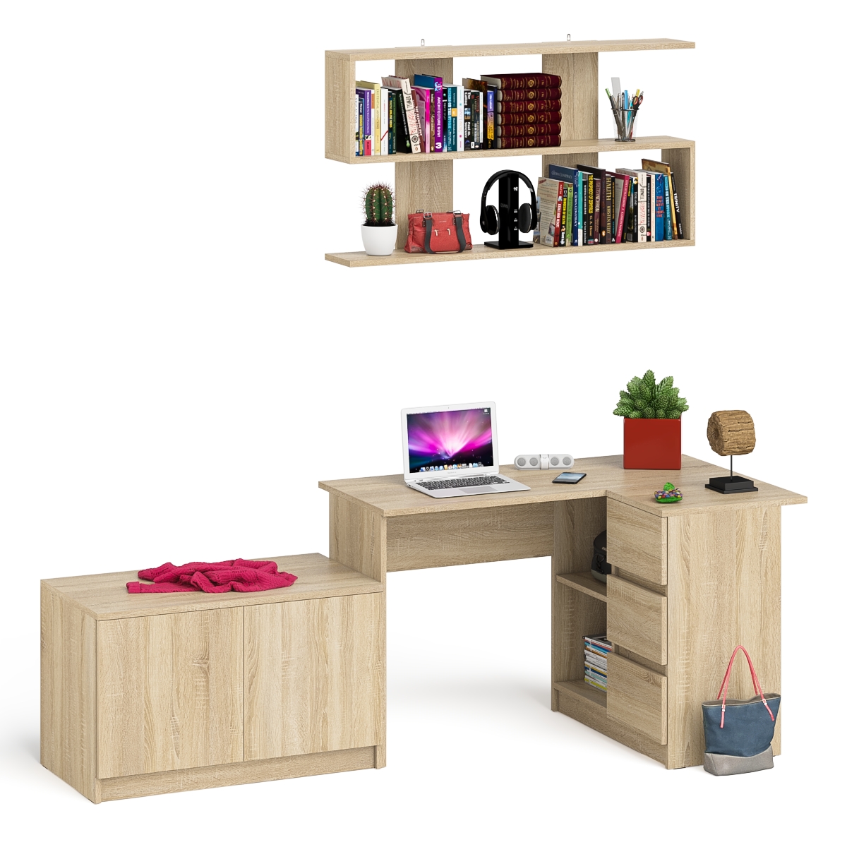Отзывы о Столплит Компьютерный угловой стол Мори МС-16 правый с открытой полкой на 1200 и 2-х дверной тумбочкой Дуб Сонома