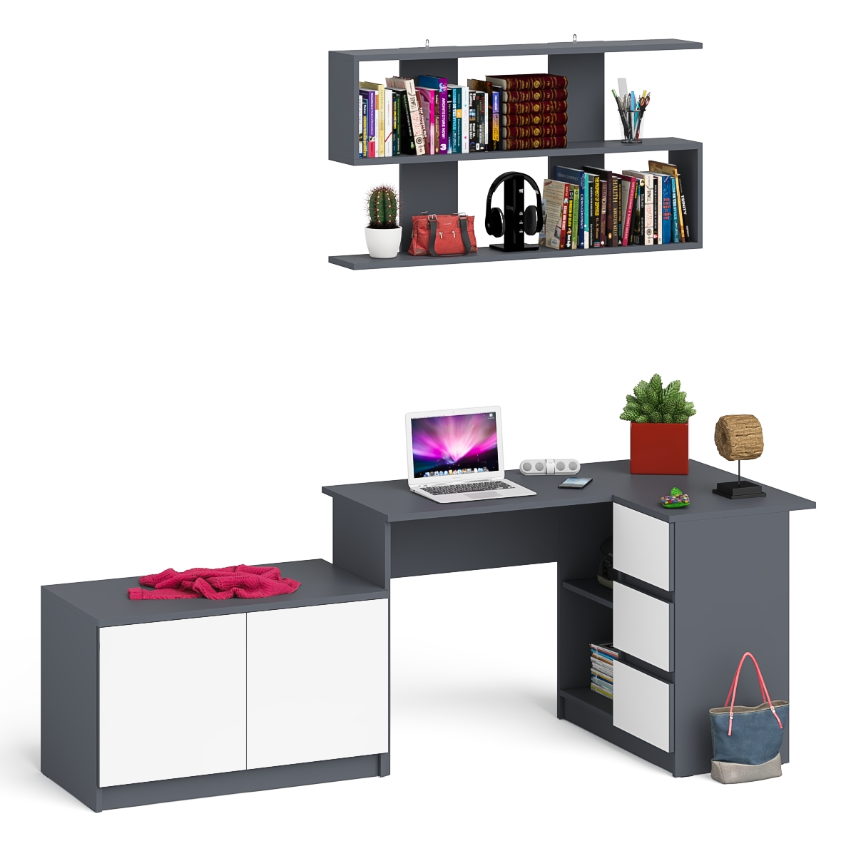 Отзывы о Столплит Компьютерный угловой стол Мори МС-16 правый с открытой полкой на 1200 и 2-х дверной тумбочкой Графит/Белый