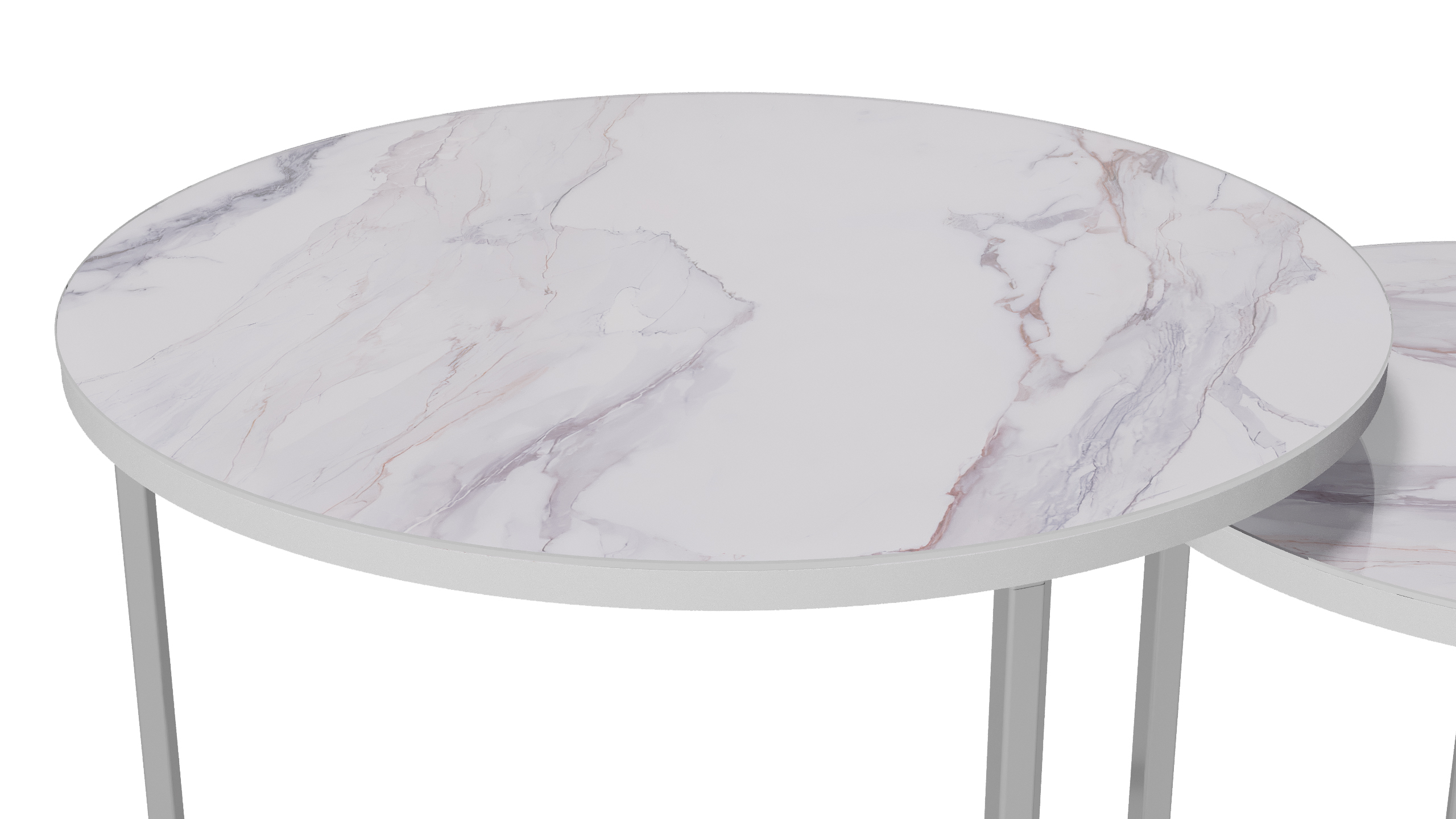 Комплект столов журнальных «Стелла» представляет собой гармоничную и функциональную композицию из двух столиков разной высоты и диаметра, расположенных один над другим. Дизайнерский прием - способность разместить данную модель любым комфортным способом или использовать каждый из них по отдельности. Стеклянная столешница с УФ-печатью с точностью передает естественную красоту рисунка. Основание полностью изготовлено из прочного металла, а черный цвет опор лаконичен и безупречен в своем блестящем металлическом исполнении. Благодаря своей строгой элегантности и универсальности журнальные столики легко комбинируются с мебелью в современном стиле. Продукция поставляется в разобранном виде, упакованная в гофрокартон. В комплект входит вся необходимая фурнитура и удобная инструкция для сборки. Максимальная нагрузка до 40 кг