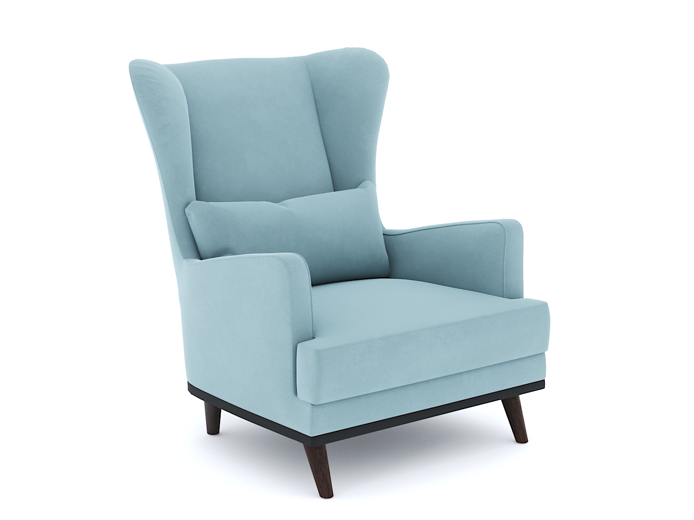 Кресло изготовлено из сухого строганного бруса и фанеры. Наполнитель - Высокоэластичный ППУ. Ножки выполнены из массива дерева цвета Венге. Небольшая подушка идет в комплекте к креслу.