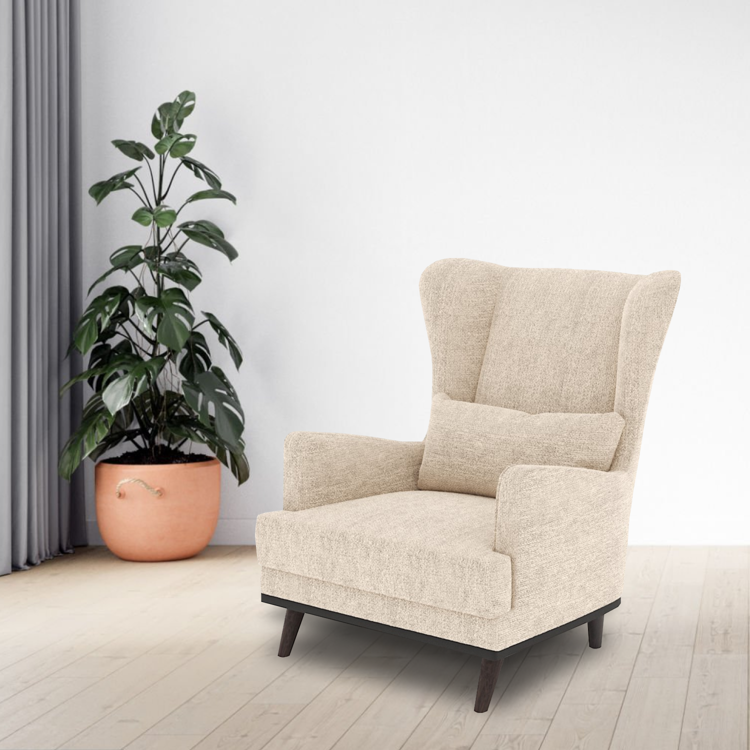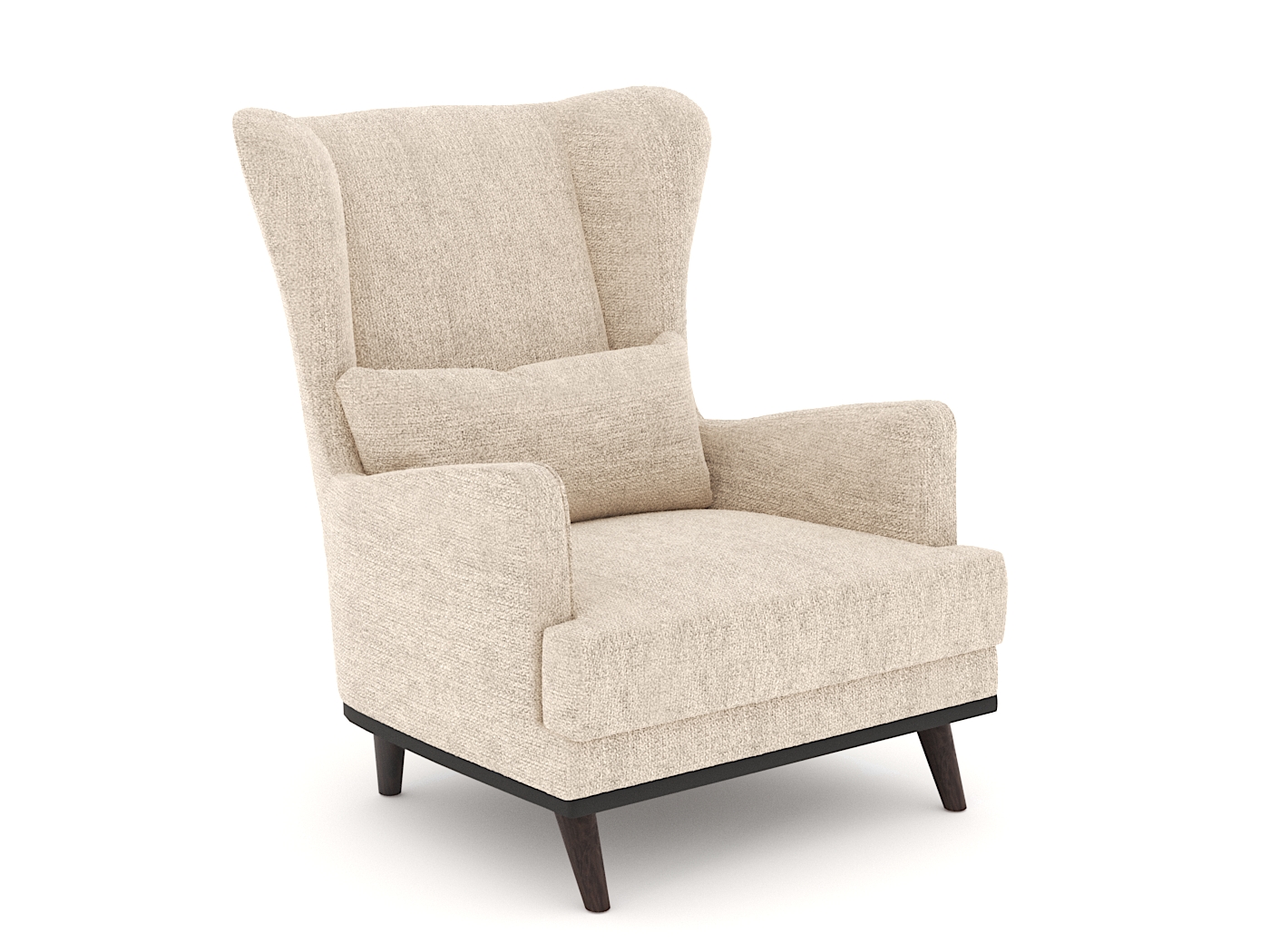 Кресло изготовлено из сухого строганного бруса и фанеры. Наполнитель - Высокоэластичный ППУ. Ножки выполнены из массива дерева цвета Венге. Небольшая подушка идет в комплекте к креслу.
