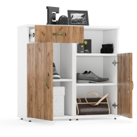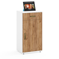 Тумба с выдвижным ящиком и дверкой идеальное решение для размещения различных мелочей, обеспечивая легкий доступ к ним. Двери на четырехшарнирных петлях, сторону открывания Вы определяете при сборке. Ящик оснащен шариковыми направляющими неполного выдвижения.