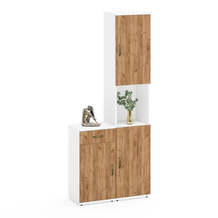 Пенал с двумя дверками и нишей идеально подходит для хранения книг, документов или декоративных элементов, создавая аккуратный и стильный вид. Пенал оборудован сверху и снизу распашными дверками и открытой нишей между ними.