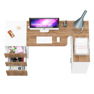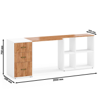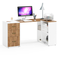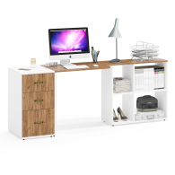 Стол-трансформер с тумбой на четыре полки представляет собой превосходное сочетание стиля и функциональности. С возможностью сборки в 2 вариантах — угловом, размером 115х50/80х75 см и прямом - 165х50/30х75 см — этот стол идеально адаптируется к любому пространству и потребностям. Благодаря встроенной тумбе с четырьмя полками, стол-трансформер не только предоставляет просторную рабочую поверхность, но и обеспечивает удобное место для хранения. Вы можете выбрать угловую конфигурацию для оптимального использования углов комнаты или прямой вариант для классической расстановки мебели.
