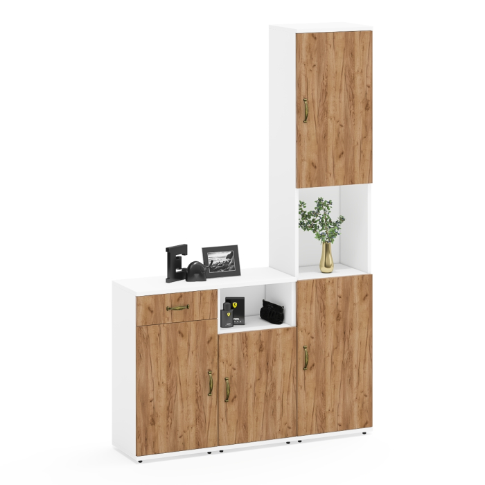 Пенал с двумя дверками и нишей идеально подходит для хранения книг, документов или декоративных элементов, создавая аккуратный и стильный вид. Пенал оборудован сверху и снизу распашными дверками и открытой нишей между ними.