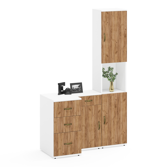 Пенал с двумя дверками и нишей идеально подходит для хранения книг, документов или декоративных элементов, создавая аккуратный и стильный вид. Пенал оборудован сверху и снизу распашными дверками и открытой нишей между ними.