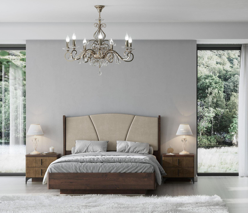 Кровать изготовлена на новой платформе с более прочной конструкцией, мягким или жестким основанием толщиной 32 мм. Изголовье кровати состоит из трех мягких подушек обтянутых микровелюром. Завершающие оригинальные боковые элементы изголовья кровати планки толщиной 32 мм. Кровать укомплектована анатомической решеткой.