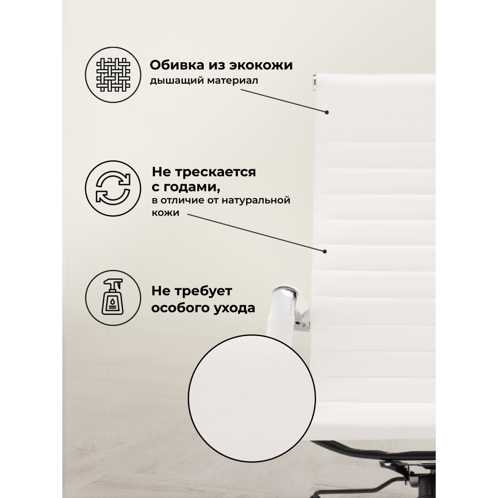 Компьютерное кресло Reus - материал обивки экокожа. Тип механизма: топ-ган. Материал каркаса хромированный металл. Высота подлокотников: 69 - 76 см. Дышащая экокожа, устойчивость к влаге и пятнам