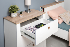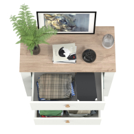 Комод оснащён тремя выдвижными ящиками на шариковых направляющих, обеспечивающих лёгкость и плавность открывания.