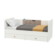 Кровать с ящиками и накладкой-карманом Джастин – новинка в скандинавском стиле, ярко выражающая свою светлую и лаконичную эстетику.