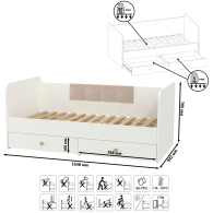 Габаритные размеры кровати детской с ящиками (ШхГхВ): 163,8х84х70,6 см.