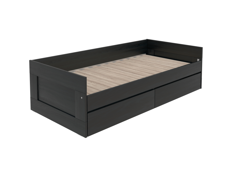 Кровать СИРИУС односпальная раздвижная с двумя выдвижными ящиками для хранения, с ортопедическим основанием, 970х2044х575. Спальное место 90/180х200. Изготовлена из кашированного ДСП толщиной 22 мм. Гарантийный срок для жилых помещений 18 месяцев, для общественных помещений - 12 месяцев.