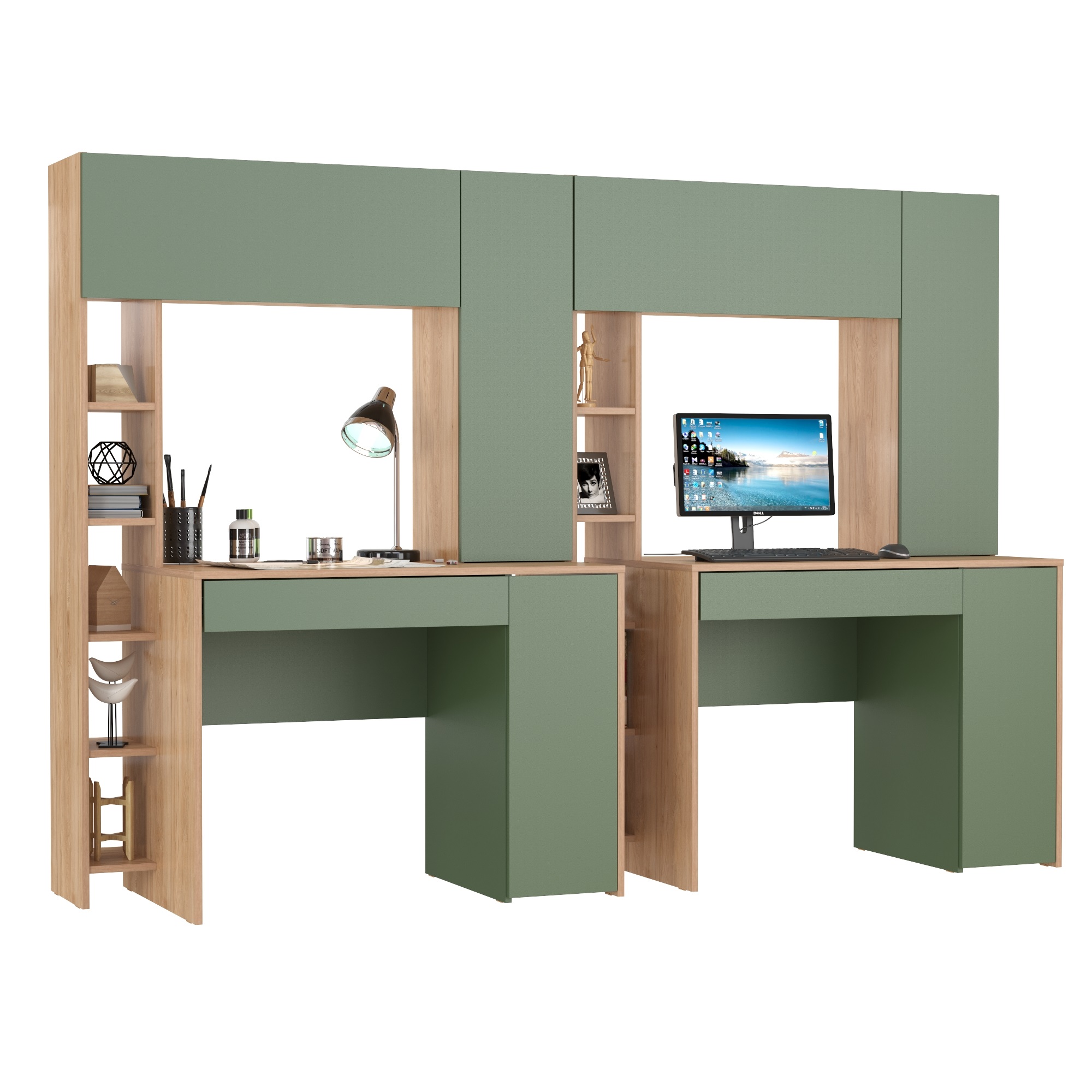 Отзывы о Столплит Комплект из рабочих столов Mobi Комфорт 12.71 Дуб млечный / зеленый