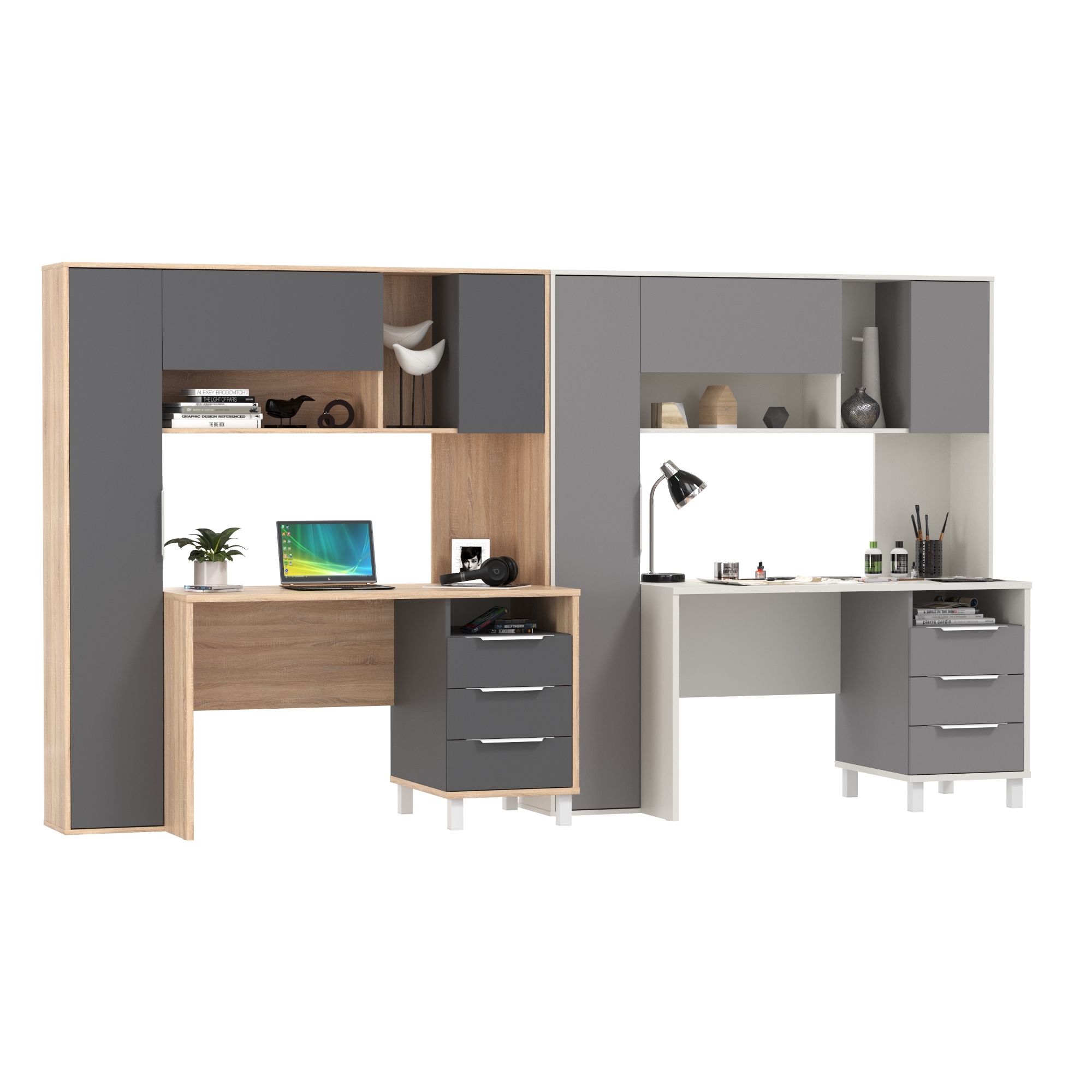 Выполнено в цветах: дуб сонома/сатин, дуб сонома/тёмно-серый, тёмно-серый/белый премиум, белый премиум/серый шифер/дуб сонома/тёмно-серый и дуб сонома/тёмно-серый/тёмно-серый/белый премиум..