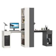 Отзывы о Столплит Два письменных стола Лайт 10.01 со шкафом с полками Белый/Темно-серый