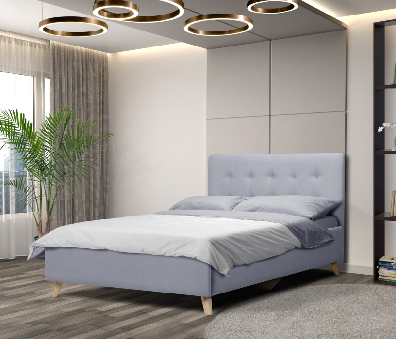 Кровать выполнена из качественного микровелюра, который с легкостью чистится при необходимости.